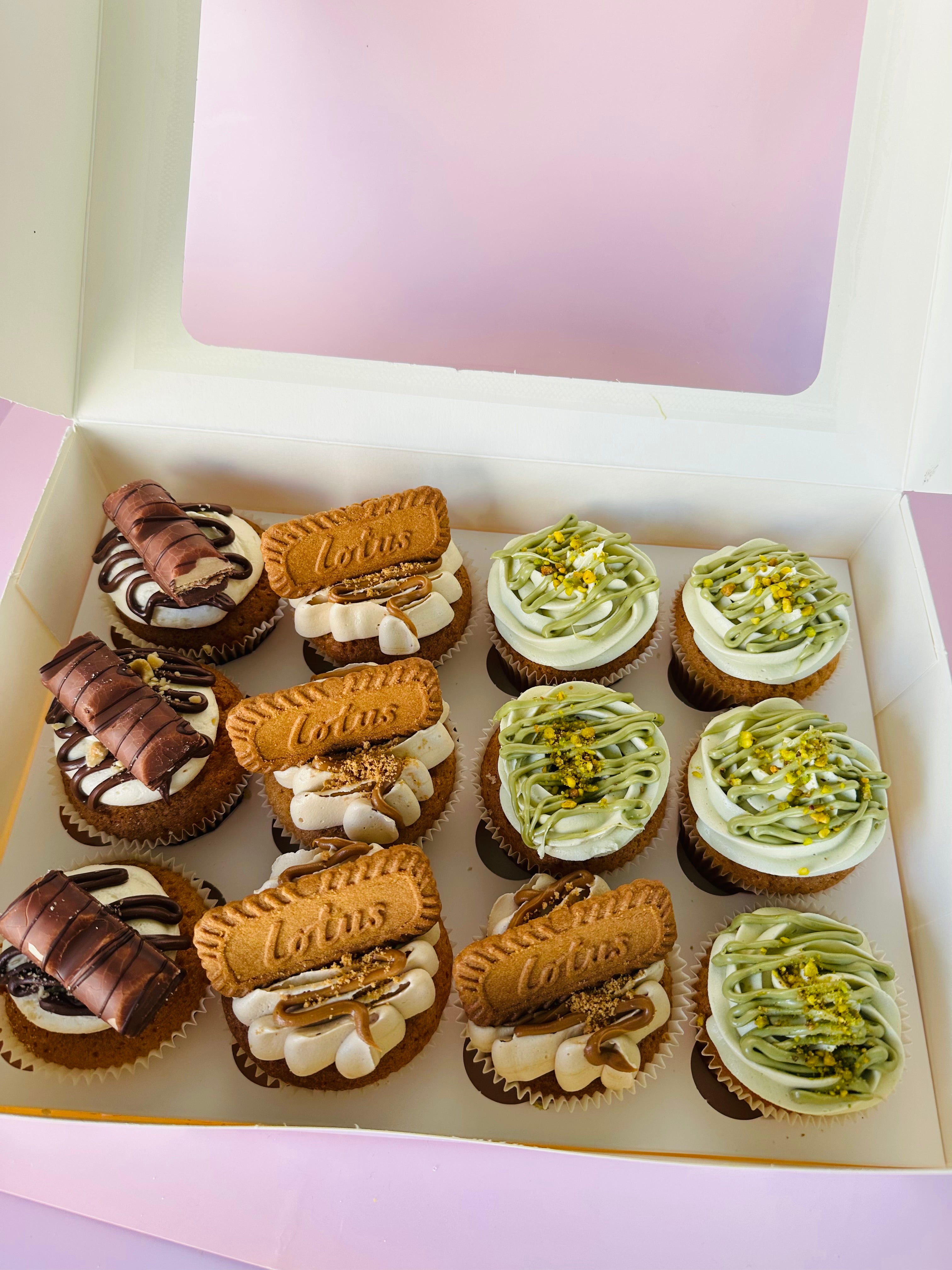 Soft, moist cupcakes infused with a variety of flavors, each topped with a swirl of creamy buttercream that complements the unique taste inside. From rich chocolate and tangy lemon to sweet vanilla and decadent caramel, every bite is a delightful burst of flavor. Perfectly balanced and beautifully crafted, these cupcakes are a delicious way to satisfy any craving.
