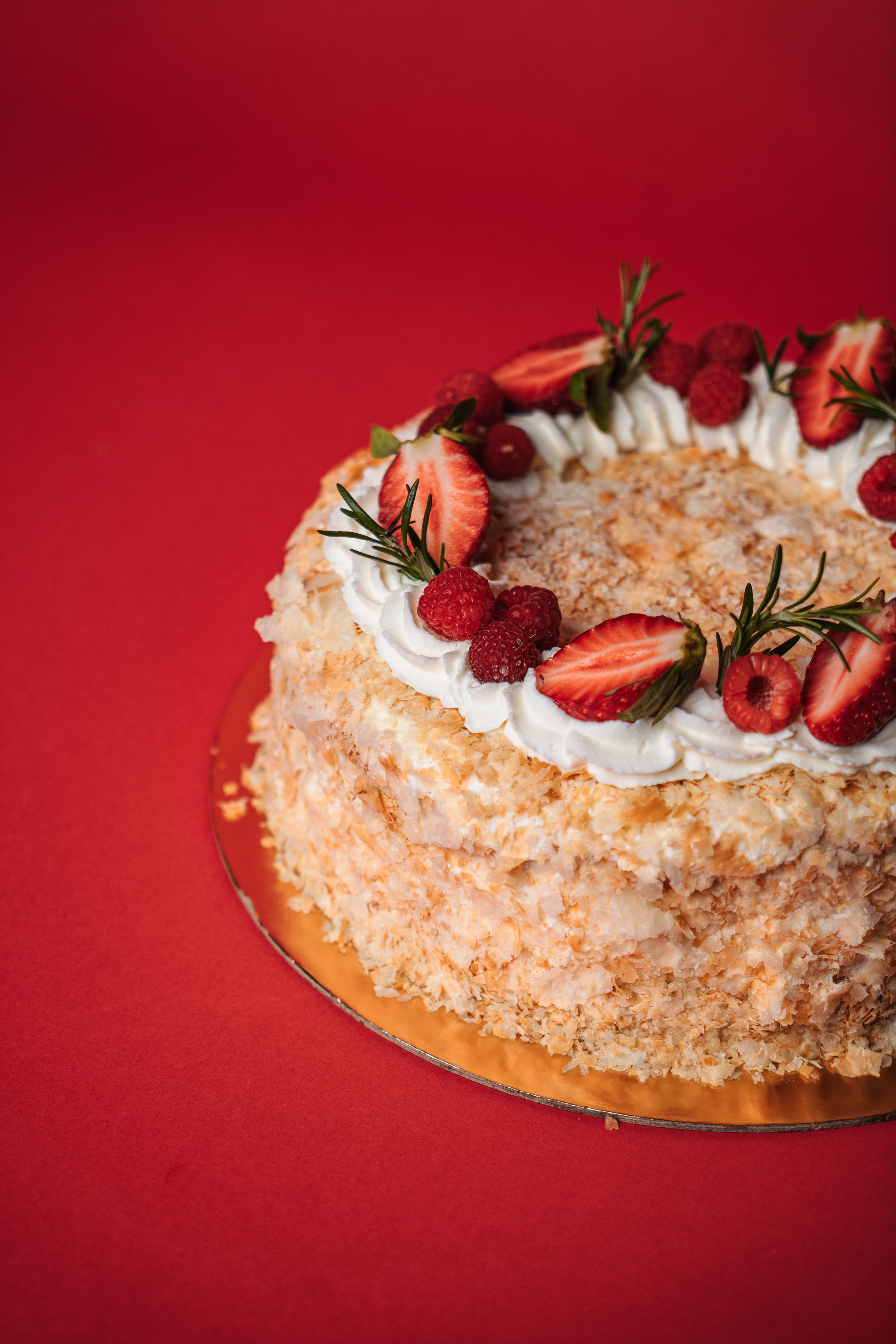 Flour, Eggs, Sugar, Pastry, Alcohol, Hazelnuts, Marzipan, Benna Fresh Cream, Fruit.