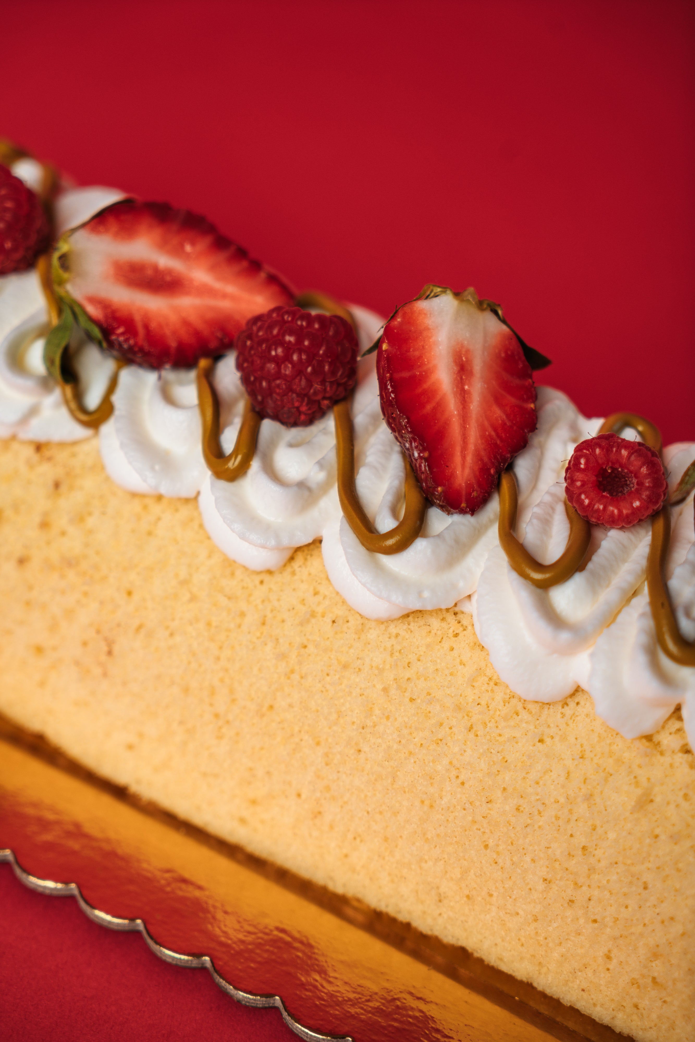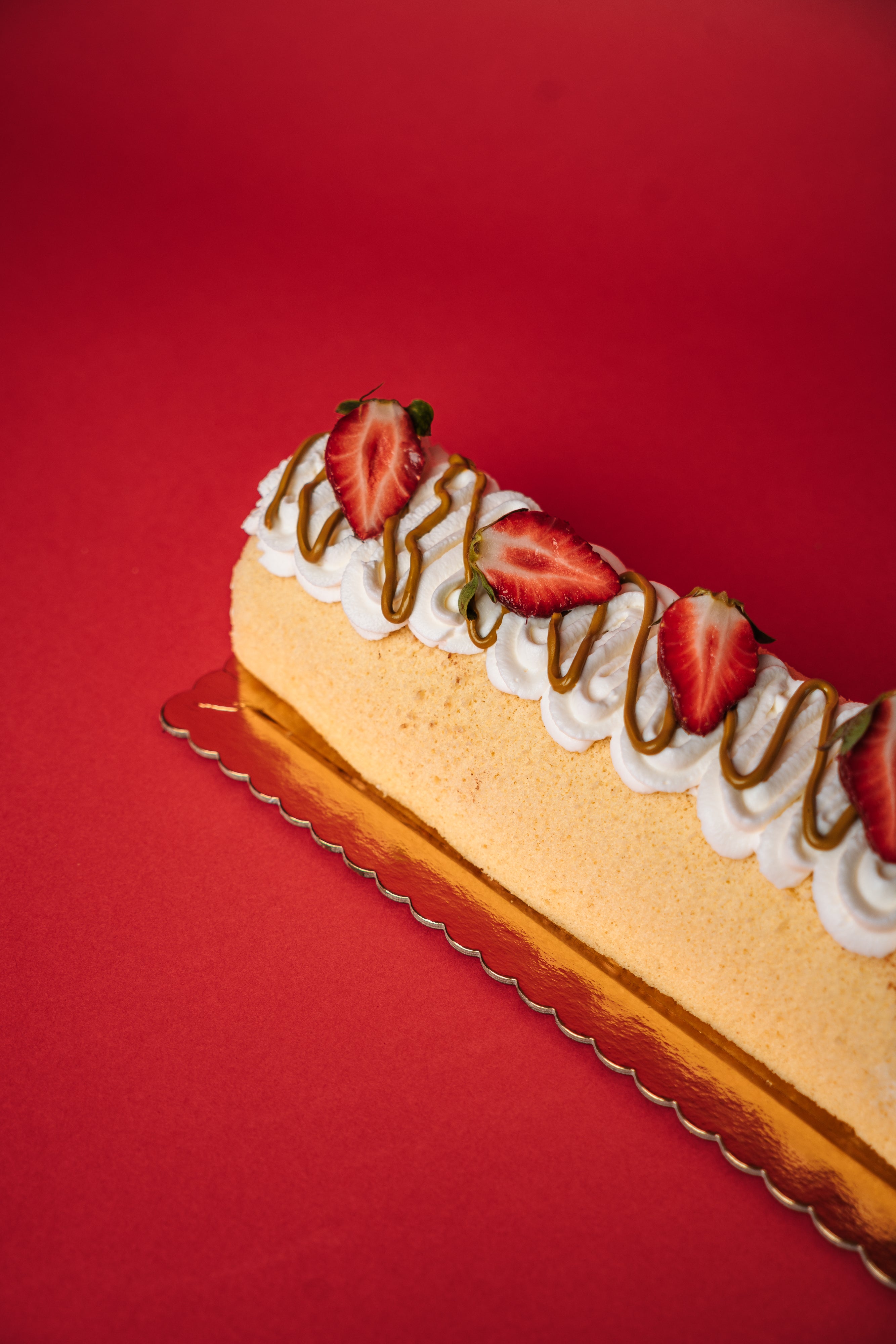 The Swiss Roll, a specialty that defines us at Scrumptious Soph. Delicate layers of our flawlessly crafted, fluffy sponge, prepared to achieve the perfect balance of lightness and richness. Versatility is the essence of our Swiss Roll, making it an ideal companion for any occasion. Whether served as a decadent dessert after lunch or dinner, or as a delightful treat during tea time, this creation is bound to captivate the hearts of dessert enthusiasts.