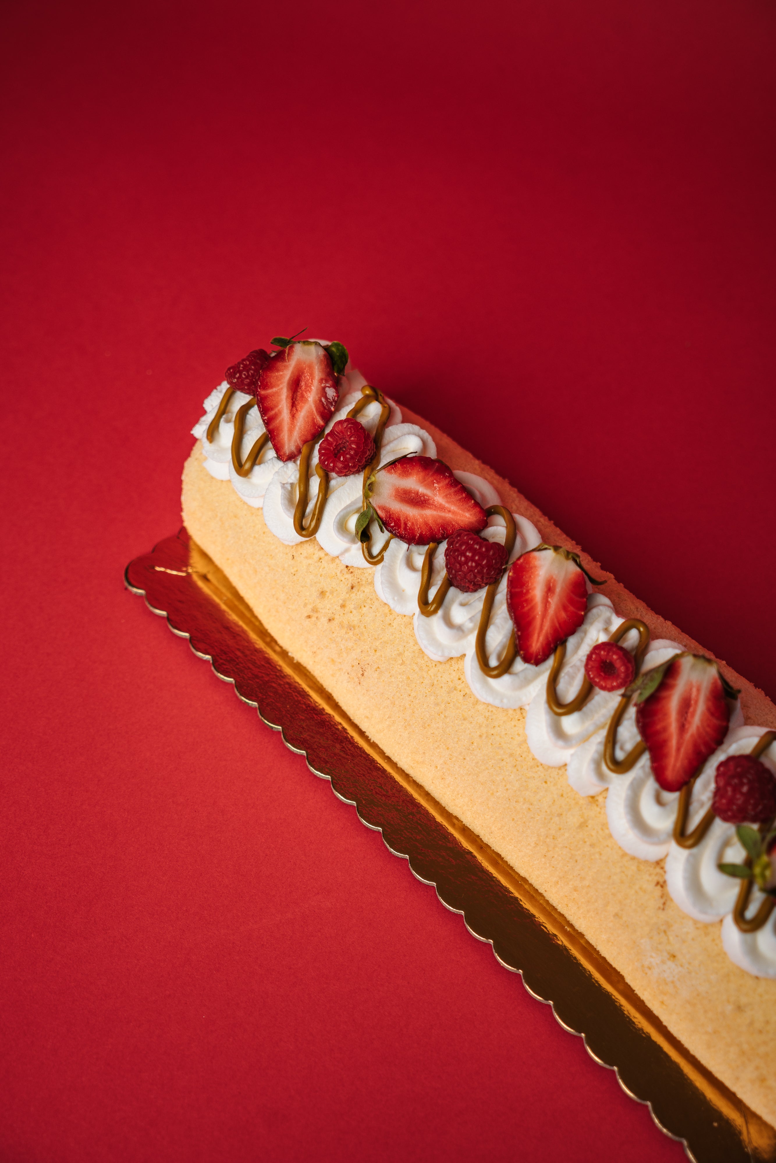 The Swiss Roll, a specialty that defines us at Scrumptious Soph. Delicate layers of our flawlessly crafted, fluffy sponge, prepared to achieve the perfect balance of lightness and richness. Versatility is the essence of our Swiss Roll, making it an ideal companion for any occasion. Whether served as a decadent dessert after lunch or dinner, or as a delightful treat during tea time, this creation is bound to captivate the hearts of dessert enthusiasts.